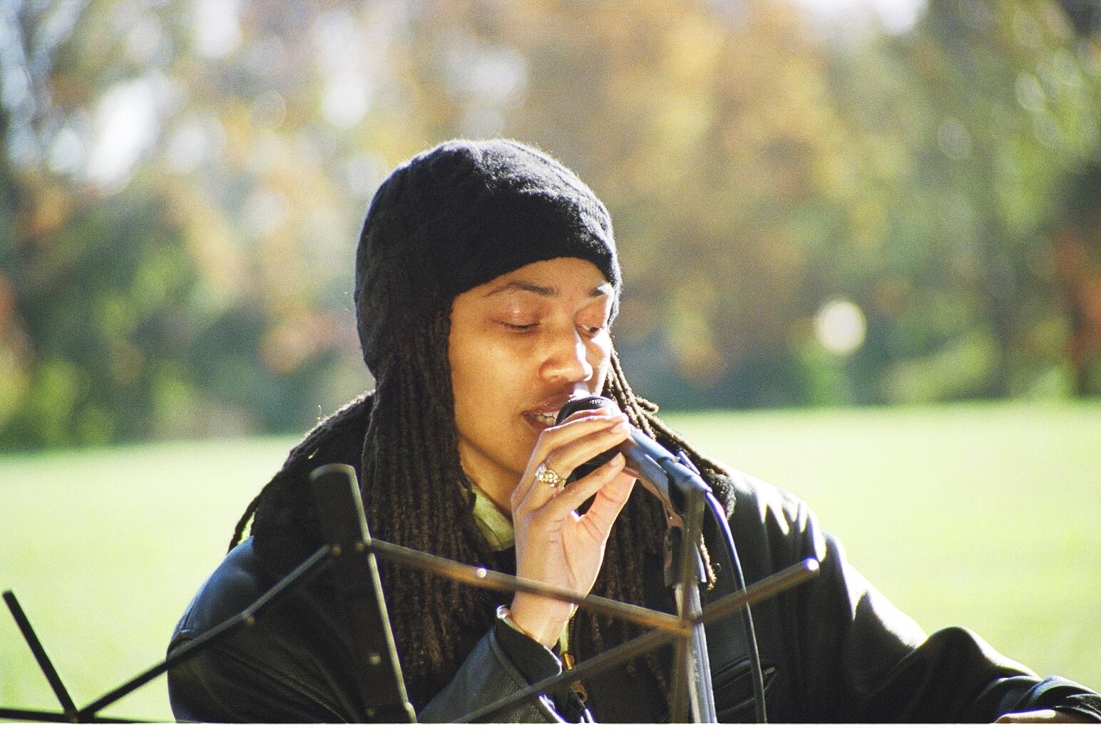 came to the 2005 Veteran's Day reading on the Mall with her husband and two