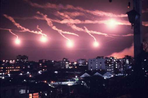 Parachute flares set the stage